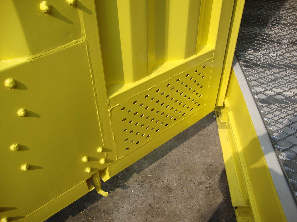 20’ High Cube Double Door Double Side Opening Dangerous Goods Container (Yellow) merupakan unit penyimpanan yang sesuai untuk cairan yang mudah terbakar. Kontainer jenis ini sudah memenuhi standar penyimpanan untuk barang berbahaya. Selebihnya, kontainer ini cocok untuk menyimpan jenis HAZMAT(hazardous material) lain atau zat tidak berbahaya yang rawan tumpah.