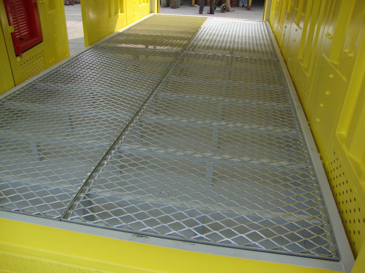 Sistem pengendalian tumpahan pada kontainer ini membantu mencegah cairan yang tumpah menyebar ke luar dari unit kontainer dan mempermudah proses pembersihan. Sistem pengendaliannya terdiri dari lantai yang berongga, wadah penampung/penadah, dan drain valve (keran buangan). Rongga-rongga di lantai akan memastikan hasil kecocoran atau tumpahan masuk ke bagian penandah. Setelah itu, Anda dapat dengan mudah membersihkan tumpahan dengan mengeluarkannya melalui drain valve.
