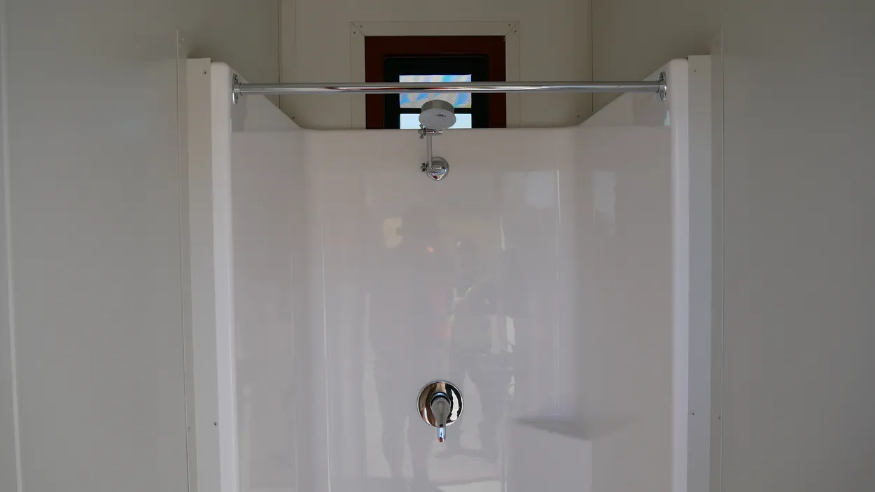 This 20ft Ablution Container is equipped with toilet cubicles, a shower, and a larger room for specialized sanitation needs. Each cubicle has its own entrance and ventilation. The container’s interior is insulated to reduce heat. Features include: