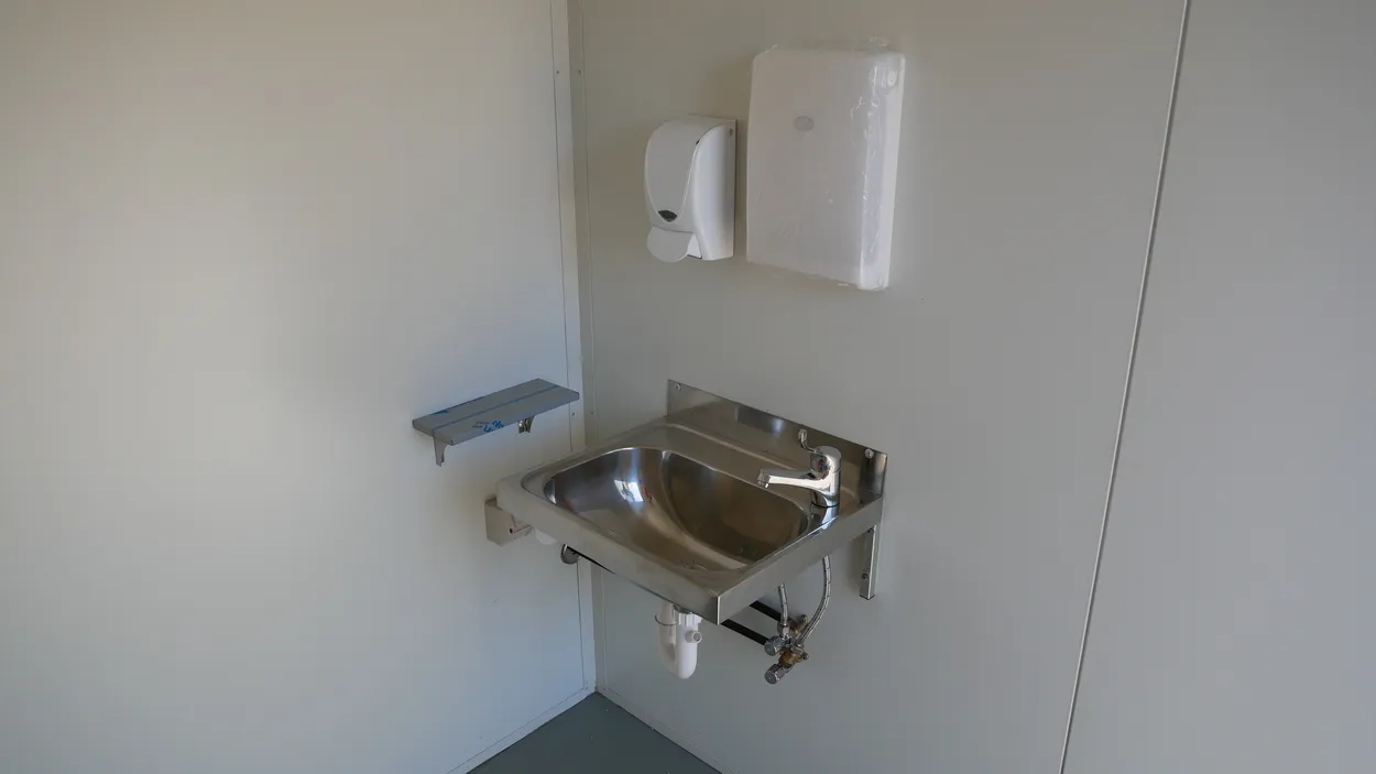 Its flexible design provides a faster and more cost-efficient alternative compared to permanent construction. The 20ft ablution container is designed and modified in the factory, then shipped to the site ready for use. The unit features a sturdy structure and is durable for long-term use.