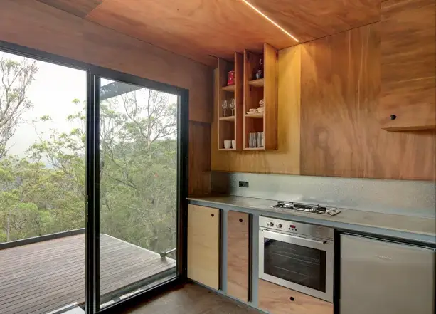 Kontainer modifikasi ini dilengkapi dengan dek hidrolik multifungsi yang memungkinkan penyesuaian ruang serta dapur bergaya rustic yang nyaman untuk menyiapkan makanan. Area makan dan ruang bersantai terintegrasi dengan baik sehingga menyediakan tempat ideal untuk berkumpul dan menikmati waktu bersama.
