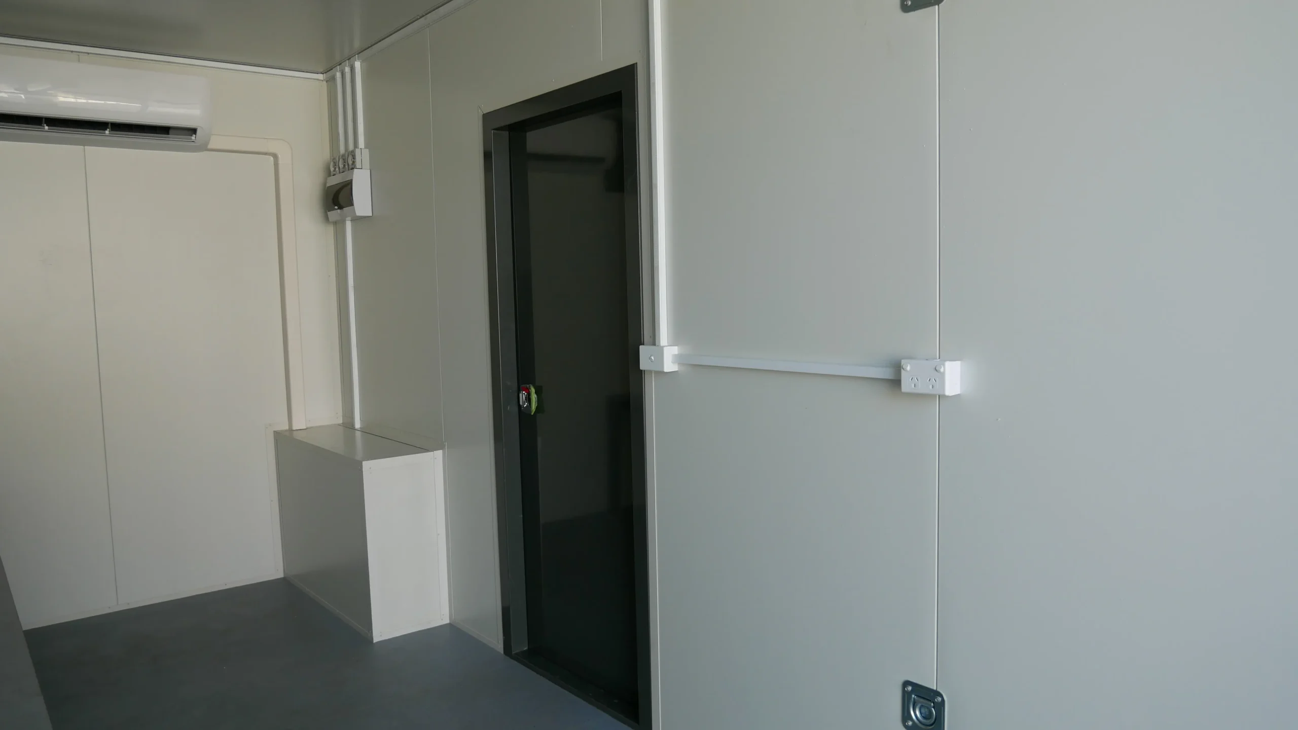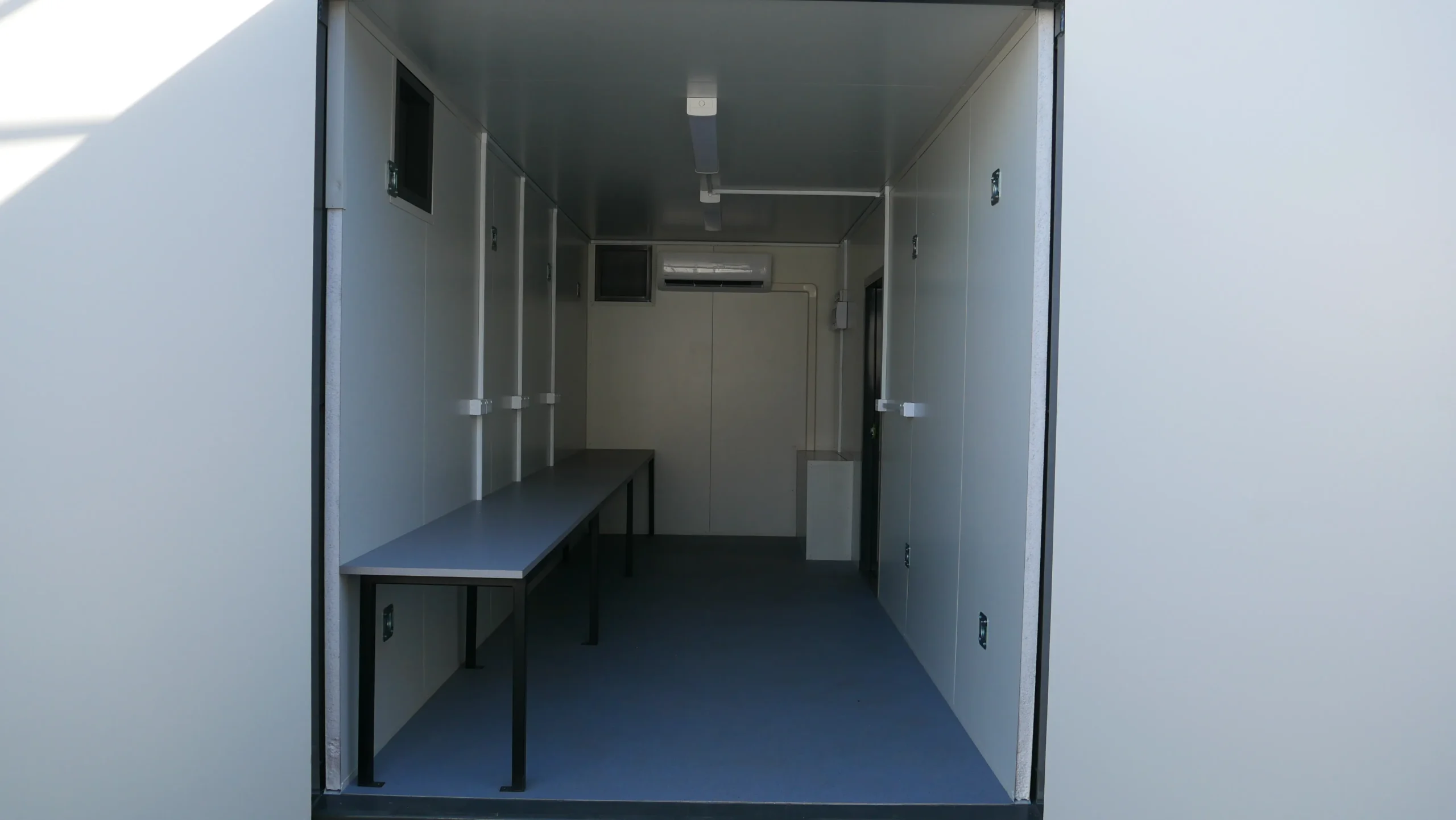 Dibangun dari kontainer high cube 20 feet, unit ini dilapisi dengan cat yang tahan korosi dan dilengkapi dengan lantai vinyl standar abu-abu yang mudah dibersihkan. Pintu akses dilengkapi dengan kunci flush fit deadlock untuk keamanan saat tidak digunakan.