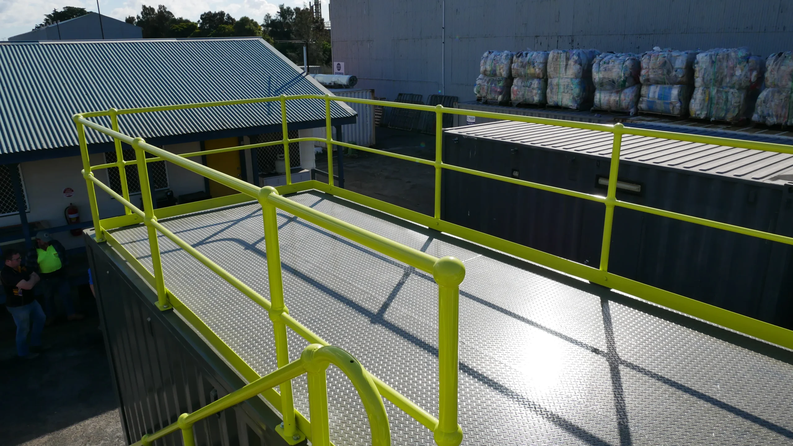 Container Comms Room dari Tradecorp dilengkapi dengan berbagai fitur inovatif untuk memberikan fungsionalitas dan kenyamanan maksimal. Di bagian atas, terdapat platform observasi dengan pagar pengaman yang memungkinkan pengguna untuk memantau area dari ketinggian dengan aman.