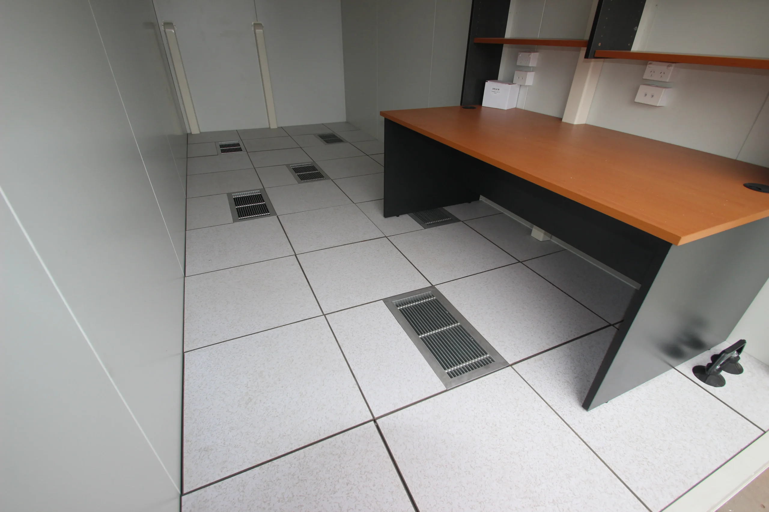 Dua unit AC dapat menjaga suhu ruangan ideal sekaligus mencegah overheating. Lantai terapung yang terangkat meningkatkan sirkulasi udara dan mengurangi kelembapan sehingga melindungi perangkat dari kerusakan.