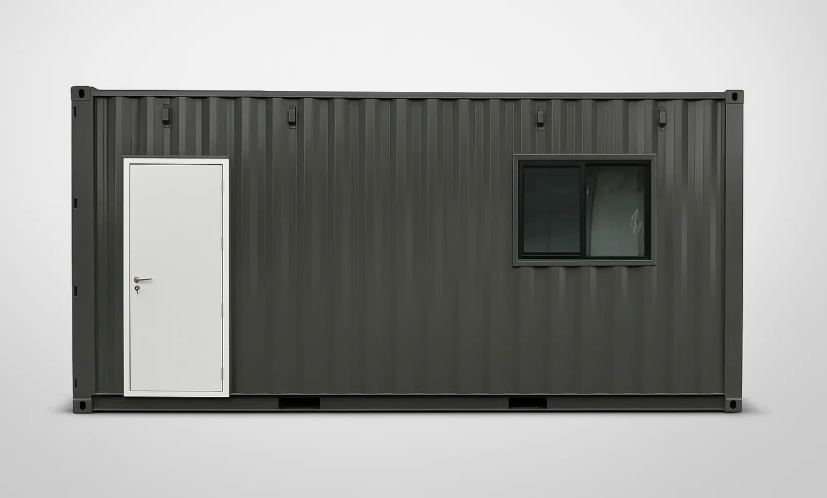 Dinding kontainer dilapisi insulasi EPS untuk menjaga suhu tetap nyaman sepanjang tahun. Lantai vinil berkualitas tinggi memudahkan perawatan dan memberikan kesan rapi. Untuk akses, terdapat satu pintu dengan dead lock yang aman, serta dua jendela geser kaca yang memungkinkan cahaya alami masuk ke dalam ruangan.