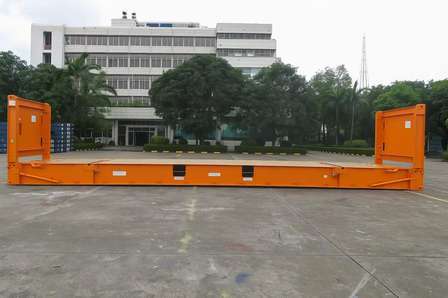 40’ Flat Rack kami memenuhi persyaratan ISO. Unit baru kami memiliki pelat CSC yang valid, sehingga bisa digunakan untuk pengiriman internasional.