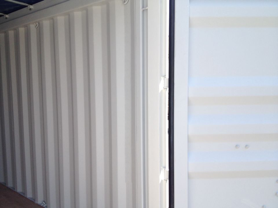 Kontainer ini juga memiliki pintu standar dibagian belakang dengan 4 locking bars sehingga memberikan fleksibilitas waktu untuk proses bongkar muat barang. Selain itu, jika Anda tidak ingin bagian atas terbuka (open top) Anda bisa memilih opsi soft top untuk menutup bagian atas unit.